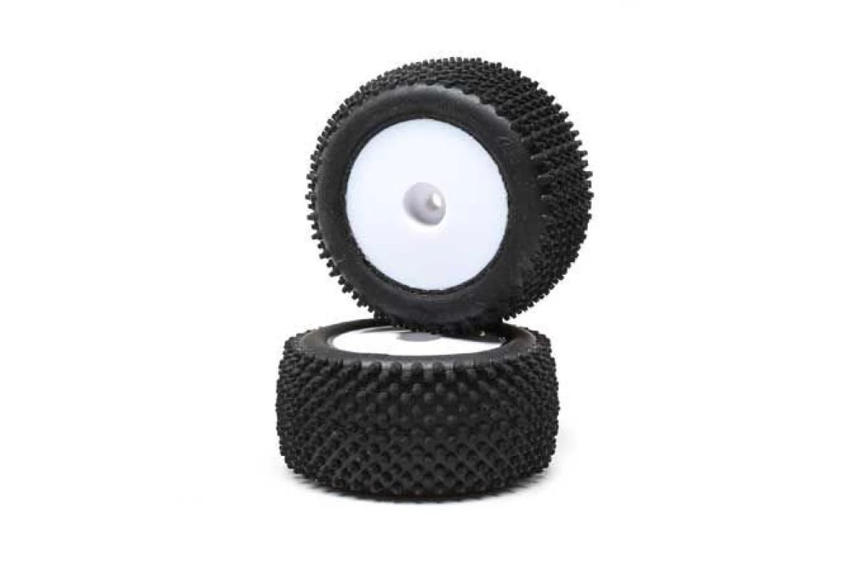These Pin Tyres, Rear, Mounted, White (2) are compatible with the Losi Mini-T 2.0